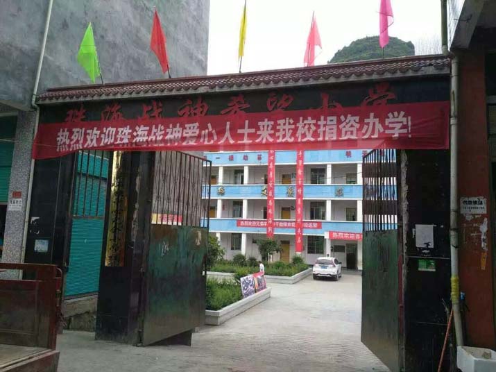 仪式上由中心完小学生组成的舞蹈团进行“4+2”特色教育文艺展演,珠海战神集团代表向完小学生发放3400套校服、180册图书等捐赠物资,并与参加演出的学生合影留念。